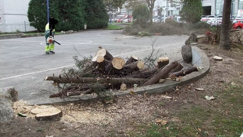Tala de árbores no Parque Europa